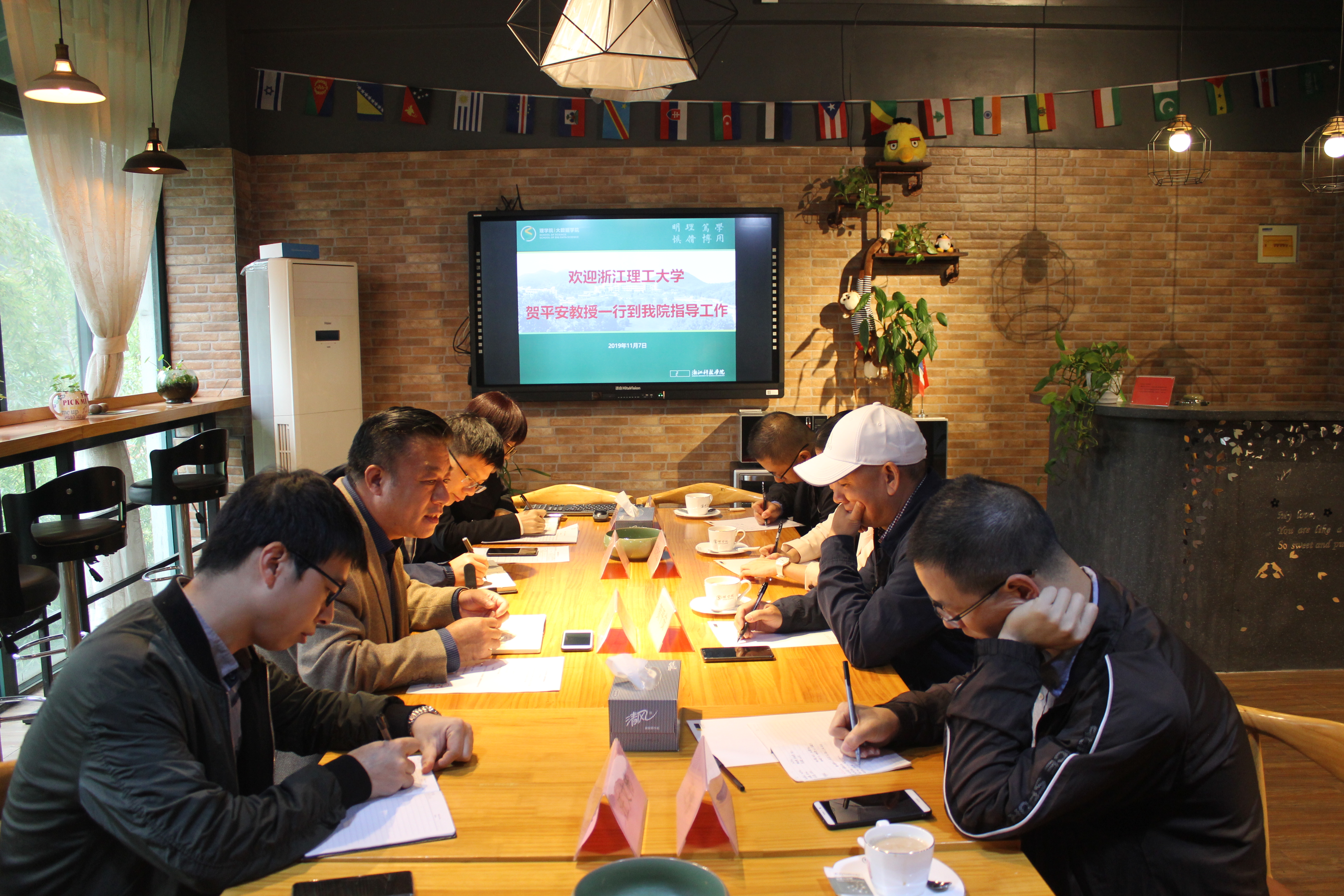 胡月介绍了大数据科学系人才引进、 团队队伍建设、团队建设、行业公司、中法合作项目等情况。同时,双方还就团队队伍、专业建设等多方面做了深入探讨和交流。最后陪同贺平安教授一行参观了大数据应用创新基地及数字可视化展厅。