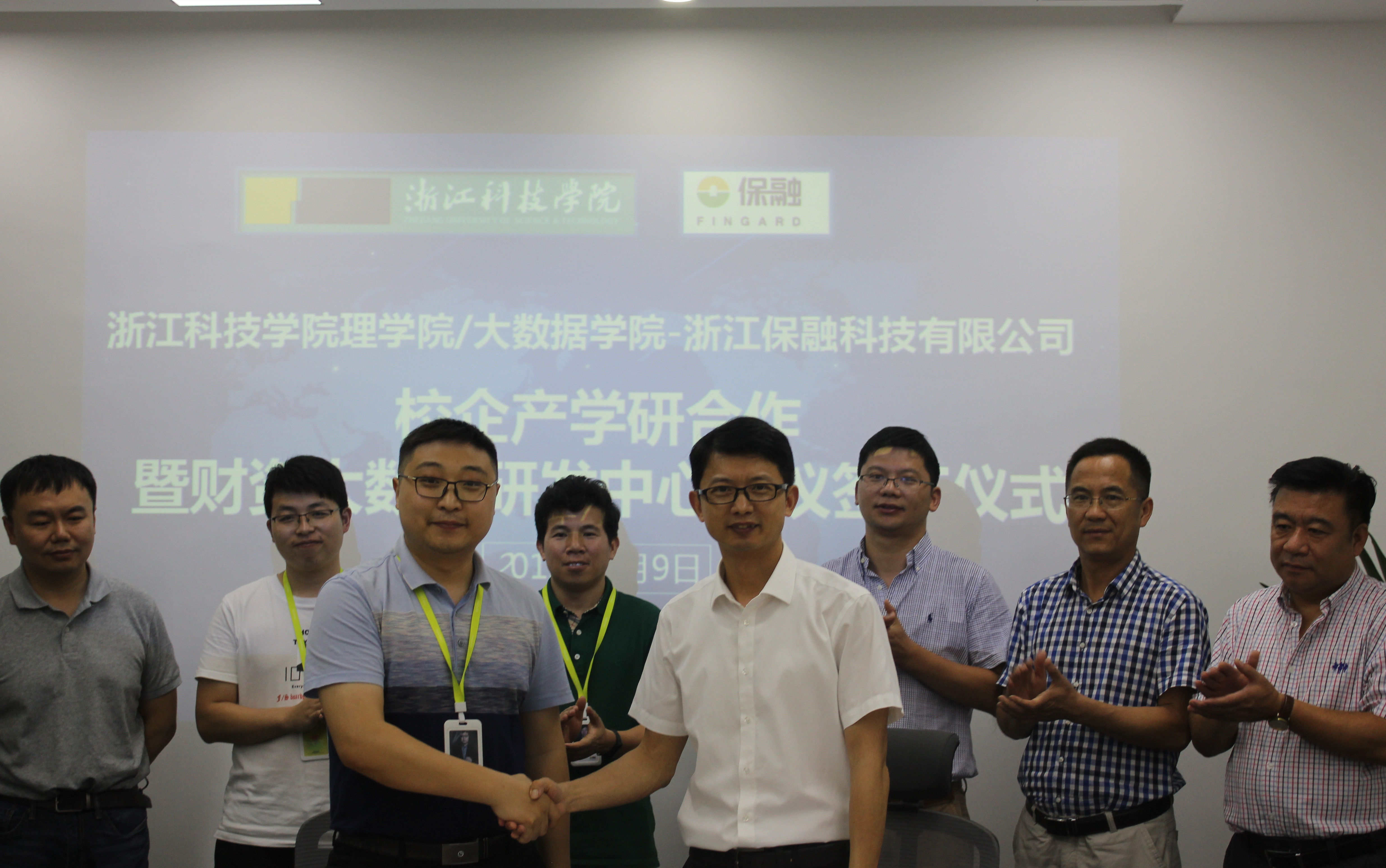 7月9日,公司与浙江保融科技有限公司签订产学研合作协议,共同成立“财资管理大数据联合研发中心”,共同建立“校企共建公司产品基地”。公司党委委员、公司书记/经理陶祥兴、副经理钱亚冠等一行6人参加。