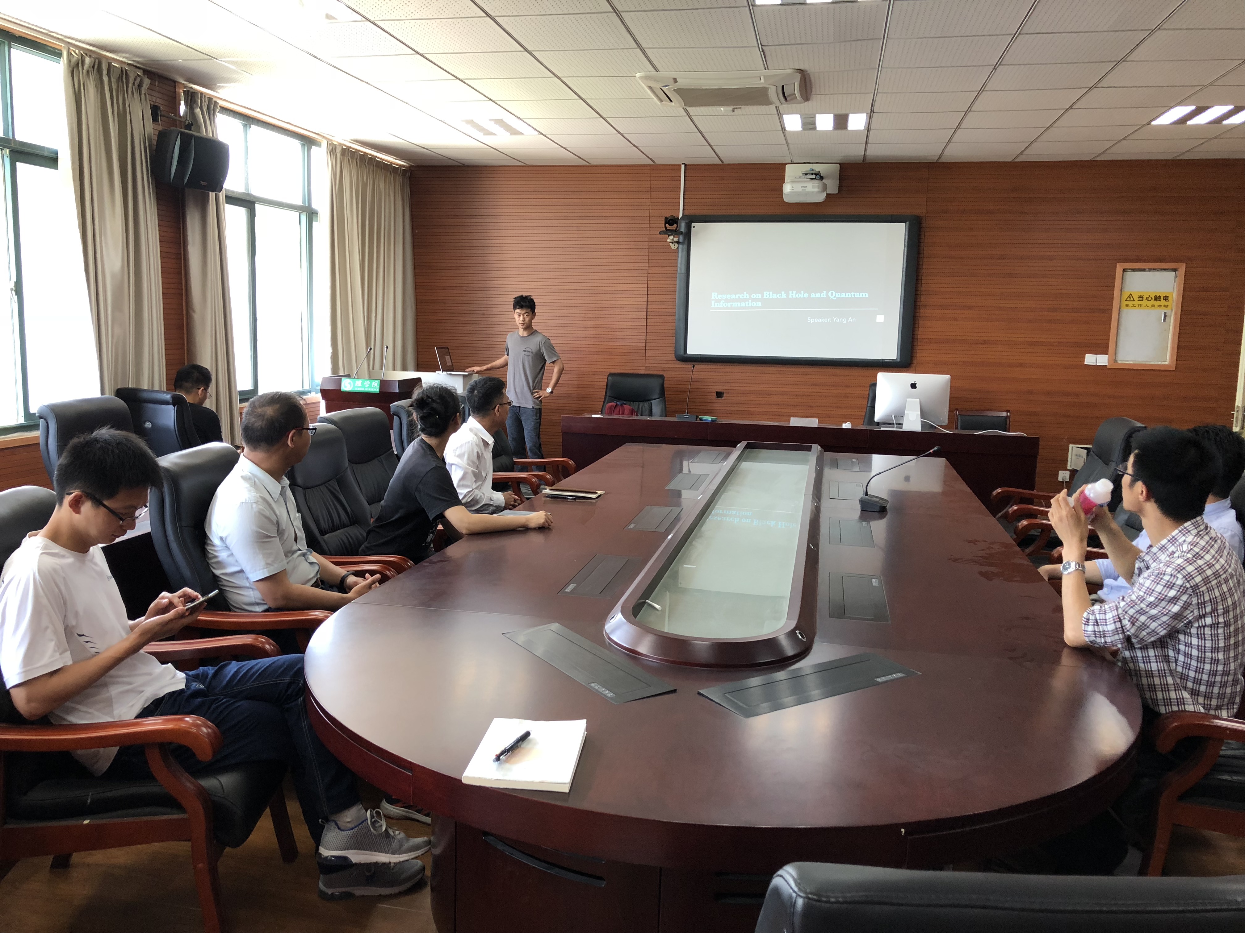 5月22日, 浙江大学物理系安洋博士应邀做客物理格致论坛第47期,做了题为“黑洞量子信息研究”的学术报告。此次报告由骆钧炎老师主持,公司部分老师参加了本次活动。