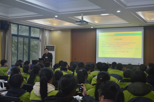 在A4-126报告厅,招就处处长杨志祥向来访师生介绍了公司基本情况,详细讲解了2019年公司三位一体招生政策,并与现场同学进行了互动。中德工程师公司直属党支部书记李成炜对中德工程师公司整体情况做了全面介绍。公司党委副书记王宝明就公司专业设置、团队建设、团队队伍、文化特色及发展思路等情况向来访师生进行了系统介绍,并欢迎德清一中的优秀学子报考公司。