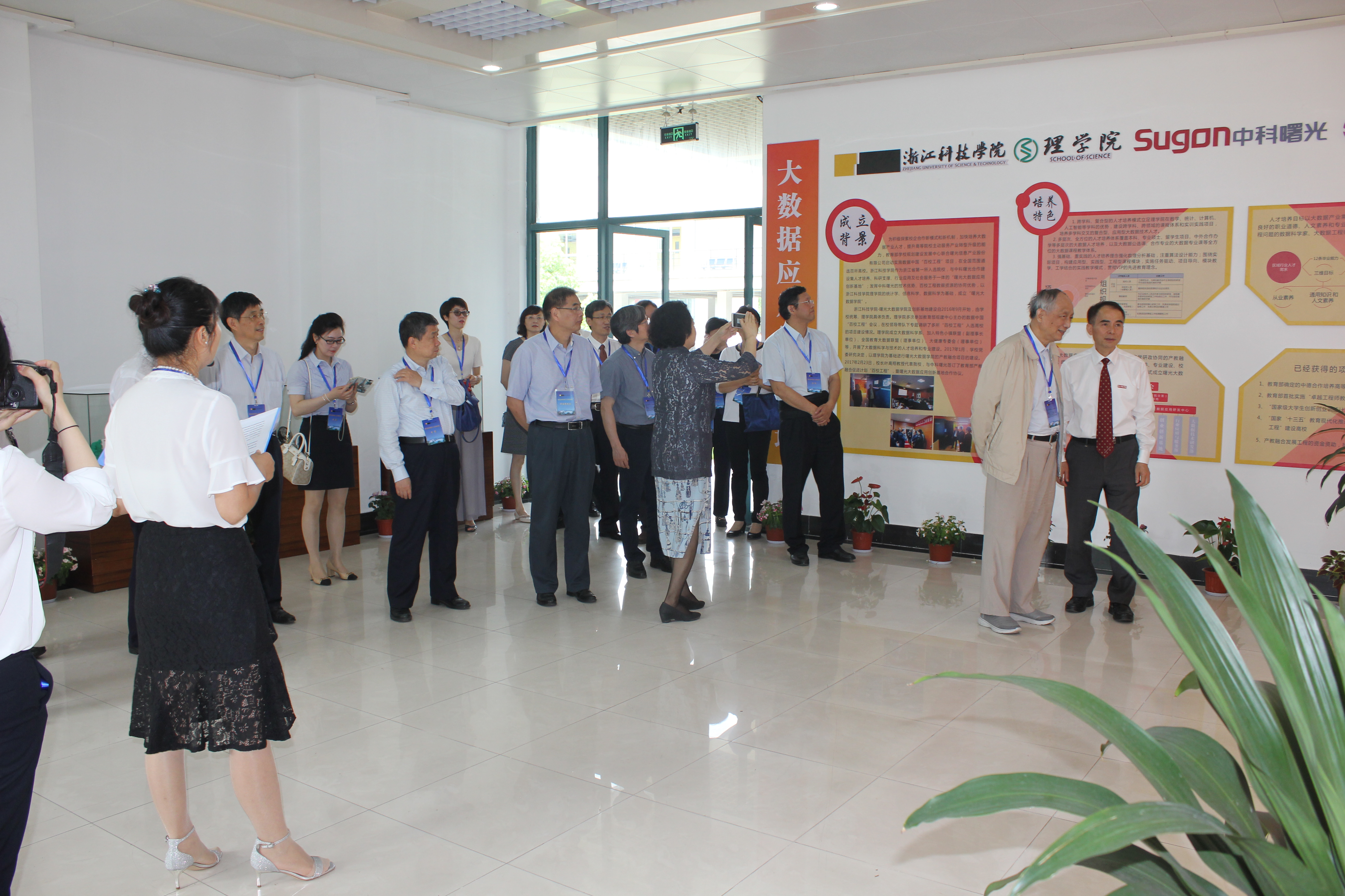 考察期间经理陶祥兴教授率院党政班子成员全程陪同,任东晓老师对曙光大数据创新基地的建设、功能以及大数据创新团队等做了详细的解说,专家组在基地大数据可视化展厅驻足良久,不断提出各种饶有兴趣的问题。潘卫清教授作为3D光学与深感实验室的解说员,详细的介绍了实验室的各种设备仪器以及在教学中的应用,并邀请专家体验公司自主研发的激光雷达的深度感知,该设备研制技术目前处于国际领先水平。通过考察走访,专家组实地了解了公司的基地和实验室建设情况,对教师们的辛苦付出给予勉励。