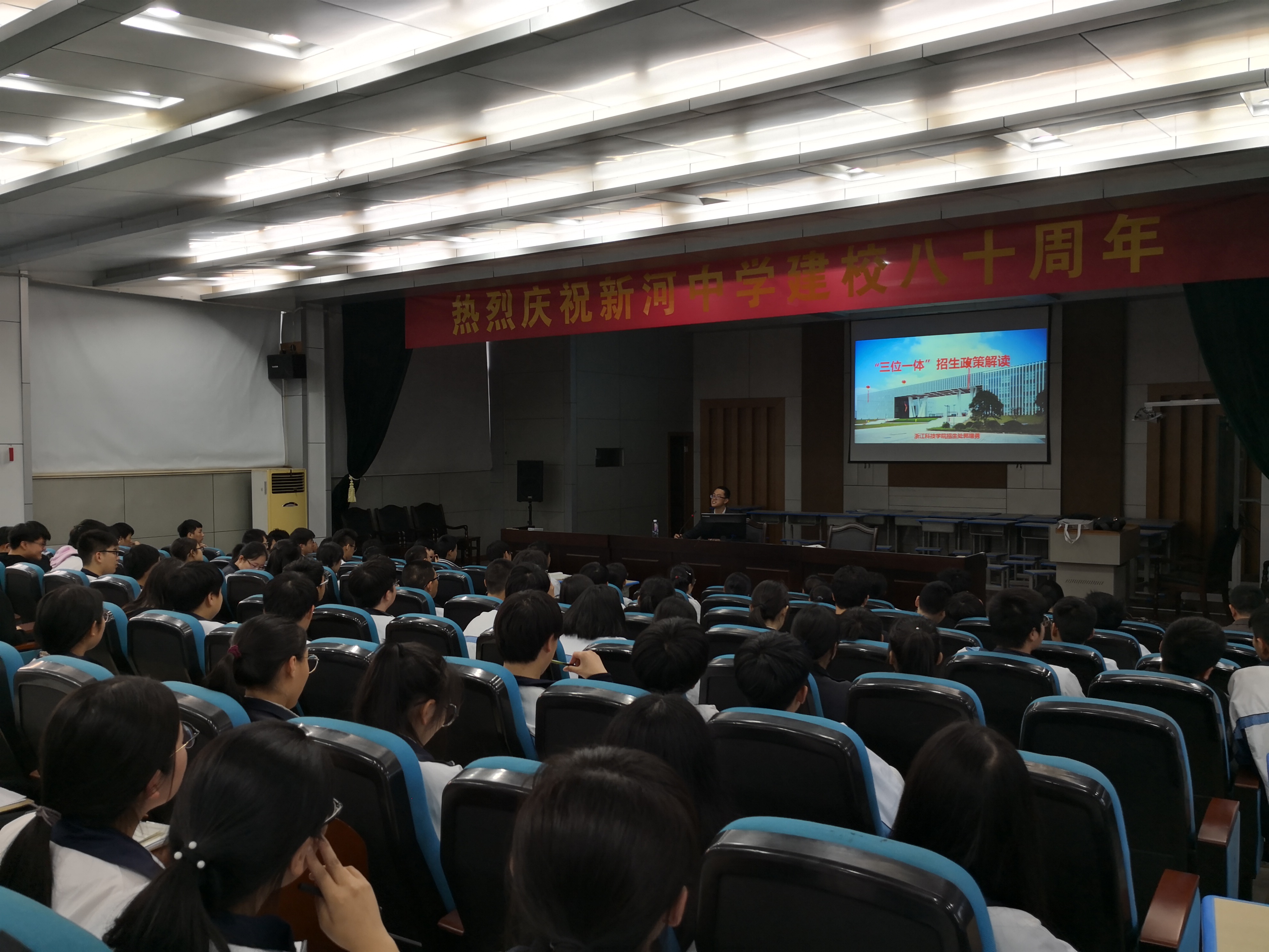 为了加强公司与中学的沟通和联系,通过主动服务不断加强优质生源基地建设,4月17日,公司党委委员王宝明和招就处招生主管郭增勇赴温岭新河中学开展招生宣传咨询活动。报名参加公司“三位一体”综合测试及有意向报考公司的200余名中员工参加了咨询宣讲会,新河中学教务办主任陶正出席并主持了本次咨询宣讲会。