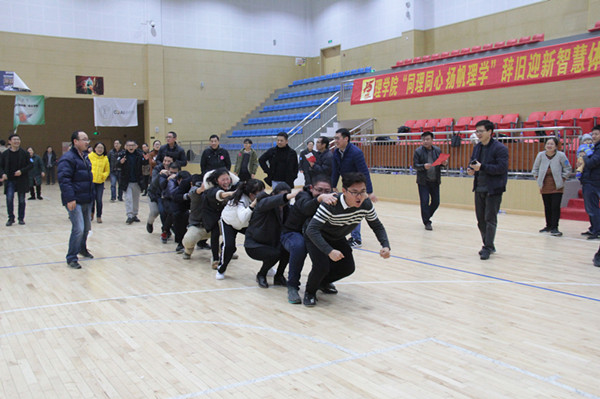 本次活动共分为三个阶段,上午各系分别举办学术沙龙活动。下午全院教工齐聚一堂,共同参与辞旧迎新智慧体育活动。冯军副董事长在致辞中,对yl23411永利官网登录在过去一年取得的突出成绩感到高兴并表示祝贺,希望yl23411永利官网登录在新的一年里能百尺竿头更进一步。“办学十五周年庆”赋予了本届大联欢新的内涵和意义,全体教工分为明理、笃学、慎修、博用四支队伍,在一系列的智慧体育活动中,大家一起“穿越时空”(长绳比赛),领略理学辉煌历程,“不忘初心”(打“保龄球”),用“摸着石头过河”(搭桥过河)的非凡勇气和智慧,“同舟共济”(千足虫行走)、“砥砺前行”,以“龙腾虎跃”(持球接力赛)之势,“扬帆理学新时代”(篮球对抗赛)!比赛中,大家齐心协力、分秒必争,充满欢声笑语。