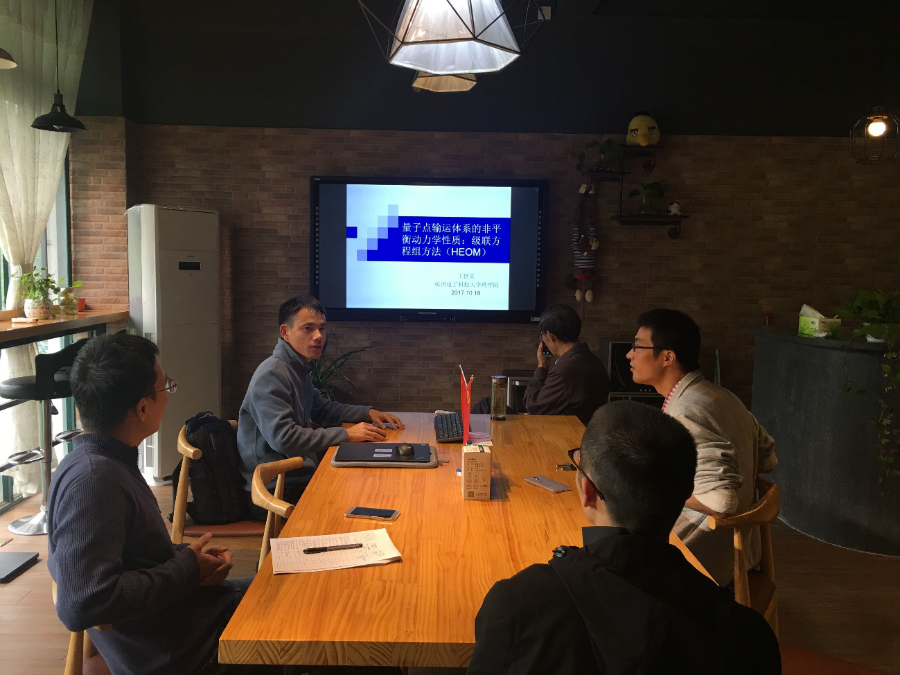 10月18日, 杭州电子科技大学yl23411永利官网登录物理系王世宽博士应邀做客物理格致论坛第29期,做了题为“量子点输运体系的非平衡动力学性质:级联方程组方法(HEOM)”的学术报告。此次报告由骆钧炎教授主持,公司部分老师参加了本次活动。