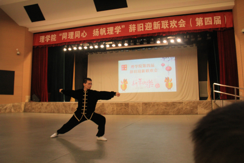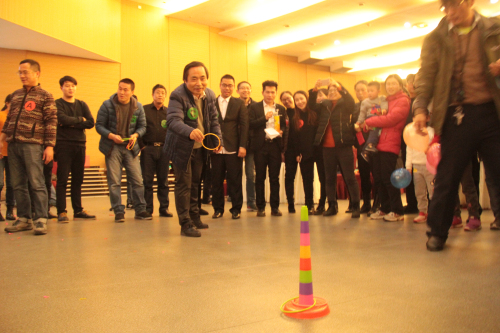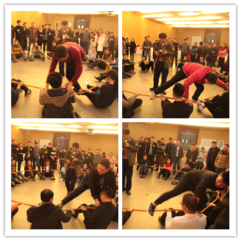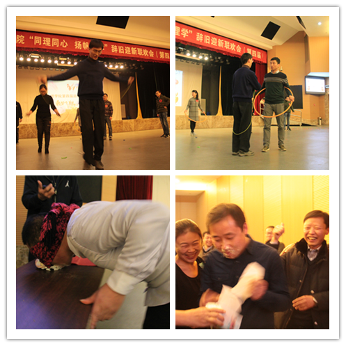 联欢会上,经理陶祥兴教授首先致辞,他简要总结了在过去一年公司所取得的成绩,感谢大家的辛苦付出。他希望在新的一年,全院师生更加齐心协力,同理同心,追求卓越,各方面更上一个台阶,并祝愿大家新春愉快、身体健康、阖家幸福。随后,在主持人胡月、王杨、马鹏飞和贺莎的主持下,老师们依次登台演出,有配乐诗朗诵、有男女声独唱、豫剧清唱、乐器演奏、武术表演,还有集体舞蹈,丰富多彩的节目充分展示了各自的才艺。演出结束后,紧接着又开始了趣味体育活动。所有教职工随机分为“金鸡报晓”、“闻鸡起舞”、“机不可失”和“鹤立鸡群”四个队,开展了趣味性很强的”萝卜蹲”和体现集体合作能力的“走钢丝”等竞赛活动。各组的比分你追我赶,好不热闹。最终,四支队伍以各项比赛累计的总分决出了名次。