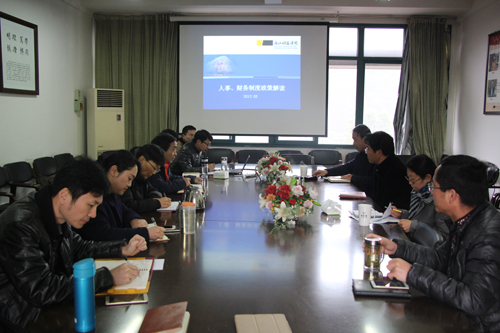 3月22日,副董事长单胜道、人事处处长杨建辉、计财处副处长余晓娟一行3人专程来公司进行人事和财务制度的政策解读。公司党政班子成员和相关财政专项负责人等参加了会议。
