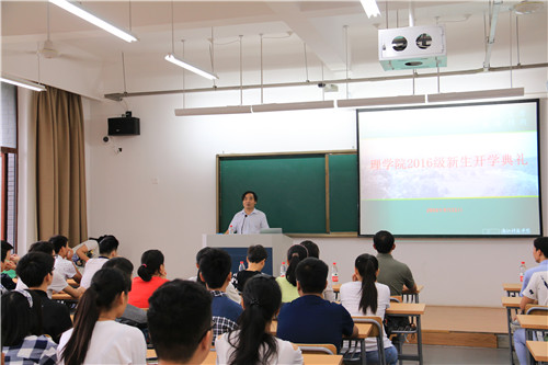 9月11日上午,yl23411永利官网登录在安吉校区A-205阶梯教室举行了2016级新生开学典礼。会议由公司党委副书记王杨主持,yl23411永利官网登录经理陶祥兴、公司党委书记苗红亚、yl23411永利官网登录教授王长荣、数学系主任朱婉珍,物理系主任潘卫清、副主任陈宝信、2016级新生班主任级yl23411永利官网登录辅导员等参加了开学典礼。