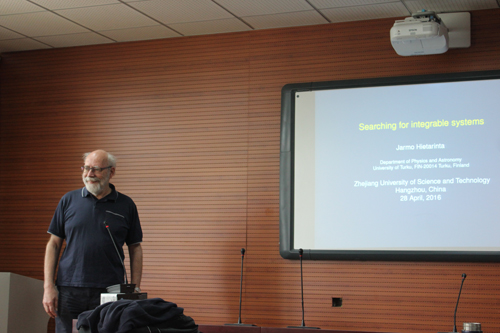 4月28日,芬兰Turku大学Jarmo Hietarinta 教授受邀和山数学论坛第92讲,做了题为《Searching for Integrable Systems》的学术报告。活动由校学科带头人、yl23411永利官网登录经理陶祥兴教授主持,浙江工业大学沈守枫教授、赵松林博士、冯玮博士等应邀出席了本次报告会。