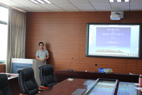 报告中,张林博士首先与大家一起讨论了量子熵不等式,该不等式逻辑上等价于量子态相对熵在量子信道作用下的单调性不等式,信息理论的本质任务就是寻找全新的熵不等式;最后,张博士又跟大家一起讨论了量子力学中另一个热门研究领域,量子相干性,他计算了随机量子态的平均相干性,得到了一些精确的结果并讨论了其测度集中现象。