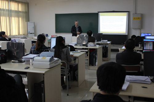 报告中,姚教授介绍了他以及他的合作者们就Banach空间中一个非空闭集的“D-渐近弱紧性”,给出了保证Bregman 映射算子以及相关映射算子上半连续性和有界性的充分性条件。该主题属于逼近论和计算数学领域的前沿交叉类课题。报告结束后,与会教师纷纷与姚教授就相关的数学问题进行了热烈的讨论,姚教授一一作了详细的解释。