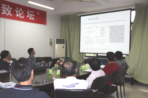 5月30日,由公司物理系主办的“格致论坛”举行第14讲。yl23411永利官网登录经理岑岗教授、科技处处长阮世平教授及物理系老师参加了报告会。报告会由物理系主任王长荣教授主持。 会上,骆钧炎博士、李旦博士、王建中副教授分别就“固态量子测量中的非马尔科夫效应”、“P波产粲夸克对撞机上的伴随产生”、“几个物理教学问题的研究和商讨”作了专题报告,介绍了自己在该领域的研究成果,并与其他老师就相关专题进行了认真而热烈的讨论。