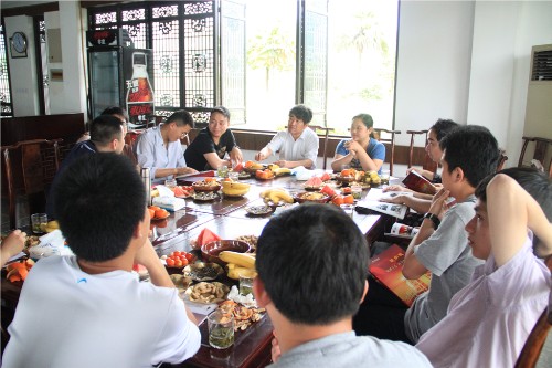 5月12日,公司员工、首届毕业生在和心居茶楼举行茶话座谈会,公司经理岑岗、班主任王伟、辅导员王杨、任课教师雷建光参加会议。