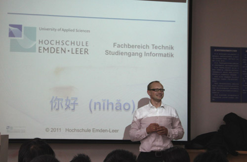 Gerd von Cölln教授首先介绍了Emden/Leer 应用科技大学以及电子与信息科学专业的一些基本情况,并重点介绍了传感器及其相关设备的基本原理,传感器在不同工业领域中的应用。报告还讨论了辅助的软件设计以及数据库结构管理等相关专业知识。