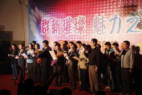 10月30日晚6:30,“群新璀璨,魅力之约”——2011迎新晚会在A4-122隆重上演。校员工处副处长刘萍、yl23411永利官网登录院领导、部分教师与同学们一起观看了演出,出席晚会的还有各二级公司员工会主席、校社联主席团等。