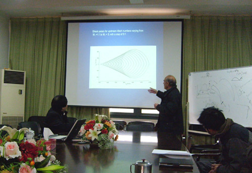 Sadi Ridah教授主要从流体力学,冲击分析,和数值结果三个方面分析阐述对可压缩库水动力学研究的结果。利用守恒律, 即质量守恒, 动量守恒,能量守恒,从流体力学的分析研究中得到了一系列的方程模型。从而能够对一定条件下的水流进行研究,并用数值分析的方法得到一系列研究结果。