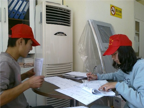 早上8点30分,分队队长带领队员乘坐校车到达各自所在社区。在这微凉的天气里,志愿者们都拿出了饱满的热情,去迎接一天的工作。社区工作人员分配任务并进行细心的工作指导之后,各组志愿者相继出发,身着黄色马夹,头戴小红帽,踏上上门普查之路,主要进行户主信息核实工作。从储藏室到沿街商铺,从居民楼一楼到七楼,每个角落都留下了志愿者的脚印。大部分居民对志愿者的上门表示理解,很配合工作,极小部分因为隐私或其他原因不肯配合的,经过社区工作人员协调后也都使得我们的工作顺利进行。其他志愿者则留在办公室进行资料整理,一项项仔细对照信息,工整地抄写长短表。还有部分志愿者负责电脑录入,电话预约工作,大家分工合作,井然有序。社区工作人员对我们的工作相当满意,同时也对我们浙江科技公司的志愿者表示了由衷的感谢。