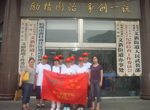 2010年7月13日,由yl23411永利官网登录青年志愿者协会组织的“走进绿色,关爱民生——yl23411永利官网登录学子社区志愿行”的暑期社会实践小分队来到了文新街道,开始了为期十天的暑期社会实践活动。本次暑期社会实践活动一行7人,由yl23411永利官网登录分团委书记王杨、社科部教师顾建亚带队前往,并进行指导。