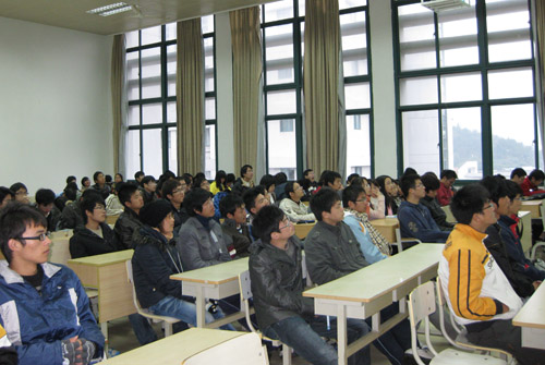 当日下午,闻理楼A3-217教室坐满了前来听讲的员工。张教授针对目前老员工中普遍存在的一些问题,围绕“大学怎么读”谈了三个问题:一是如何从个人未来职业发展所需要的知识、能力、素质要求来确定不同的学习方式,以及如何从本科、研究生、博士生的不同定位确定大学学习的方式;二是从数学在自然科学研究中的地位和数学在信息领域中的重要性谈数学的价值;三是针对信息与计算科学专业的员工谈关于专业方向的问题,以及如何选择研究生方向的问题。讲座中,张教授结合自身的经历,以生动的言语、渊博的知识、深邃的数学思想与同学们谈了数学学科的重要性,以及大学数学学习的方法和数学思维训练的方式。最后,他鼓励大家确立远大目标、树立信心、有效学习,实现自己的梦想与人生价值。