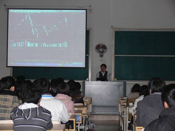 近百位师生到场聆听了报告,张先生从神奇的费波纳齐数列“1,1,2,3,5,8,13,21……”谈神奇股票预测,精彩分析深深吸引了到场听众。报告既有课堂理论知识,又与实践相结合,大家深感受益匪浅。