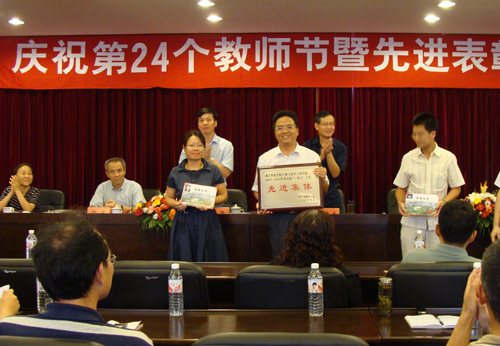 个教师节暨表彰大会。校领导徐志平、胡浙平、陈浩、陈根芳、吕进、赵东福、鲁凤出席会议。受表彰的省校两级先进集体和个人代表、各公司和部门负责人及师生代表百余人参加会议。