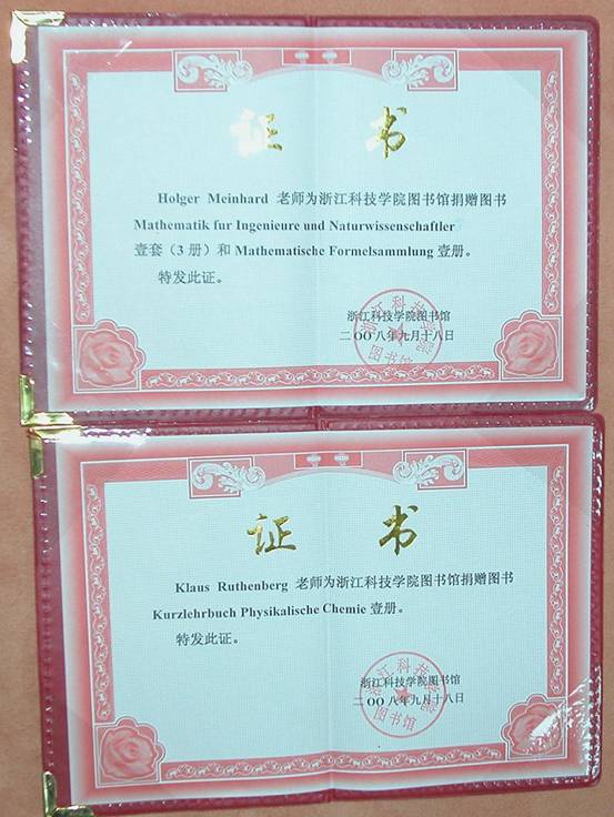 教授向公司图书馆赠送了五本德国出版的数学和物理化学教课书。