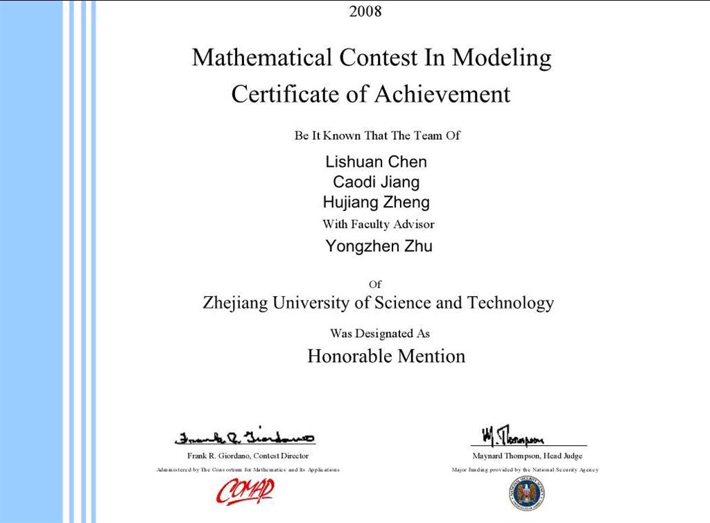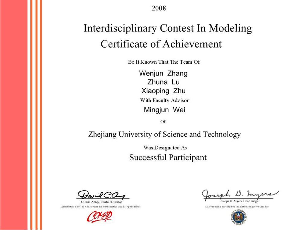 美国国际老员工数学建模竞赛Successful Participant(成功参赛奖)