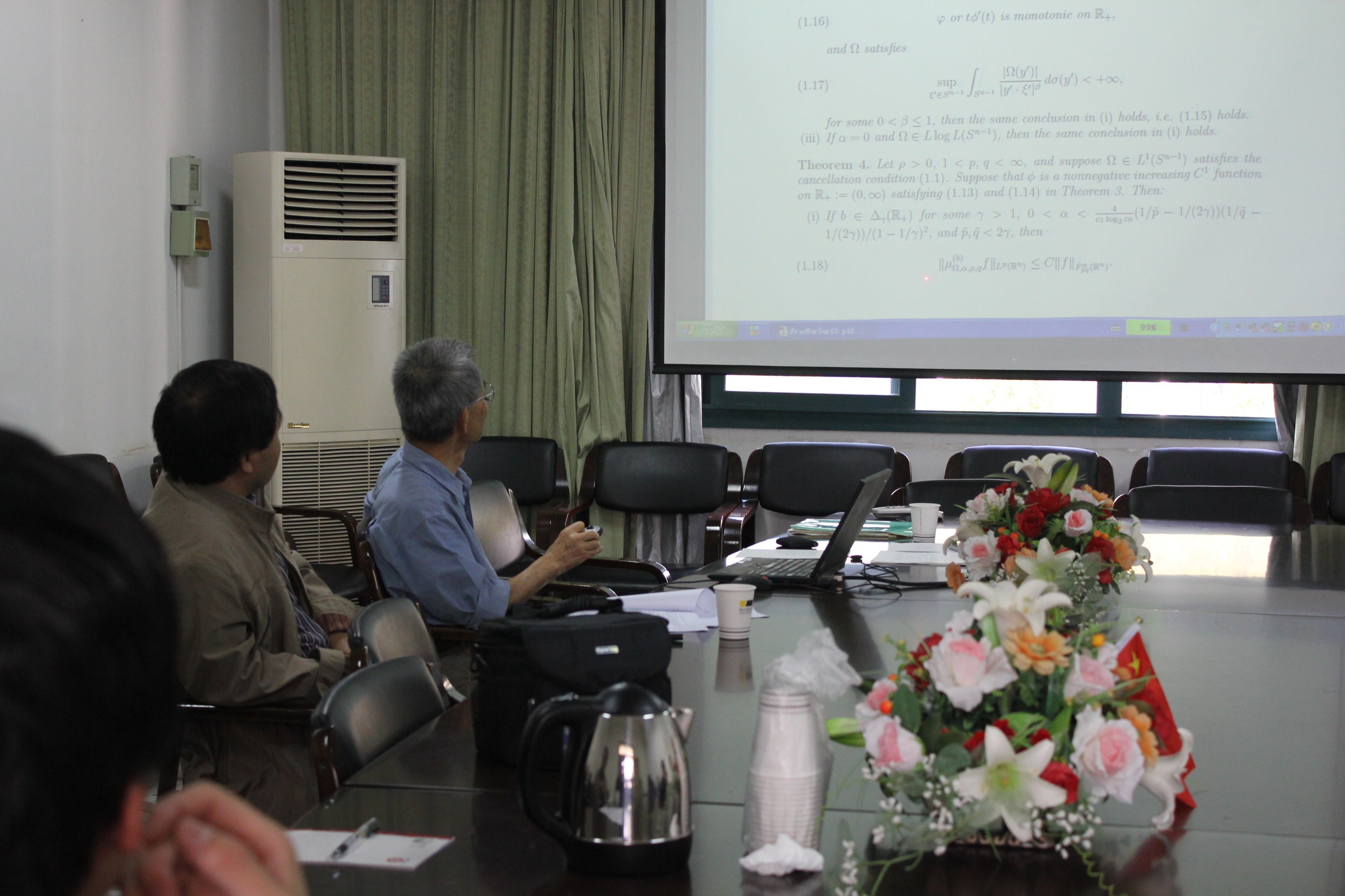 Yabuta教授是国际知名的调和分析专家,他在报告会上介绍了曲面上分数次非齐次核Marcinkiewicz积分算子有界性理论的最新研究成果,该研究成果推广了本领域已有工作。Yabuta教授应邀对公司数学学科进行了三天访问,期间相关老师和研究生与Yabuta教授进行了学术讨论与学术交流。
