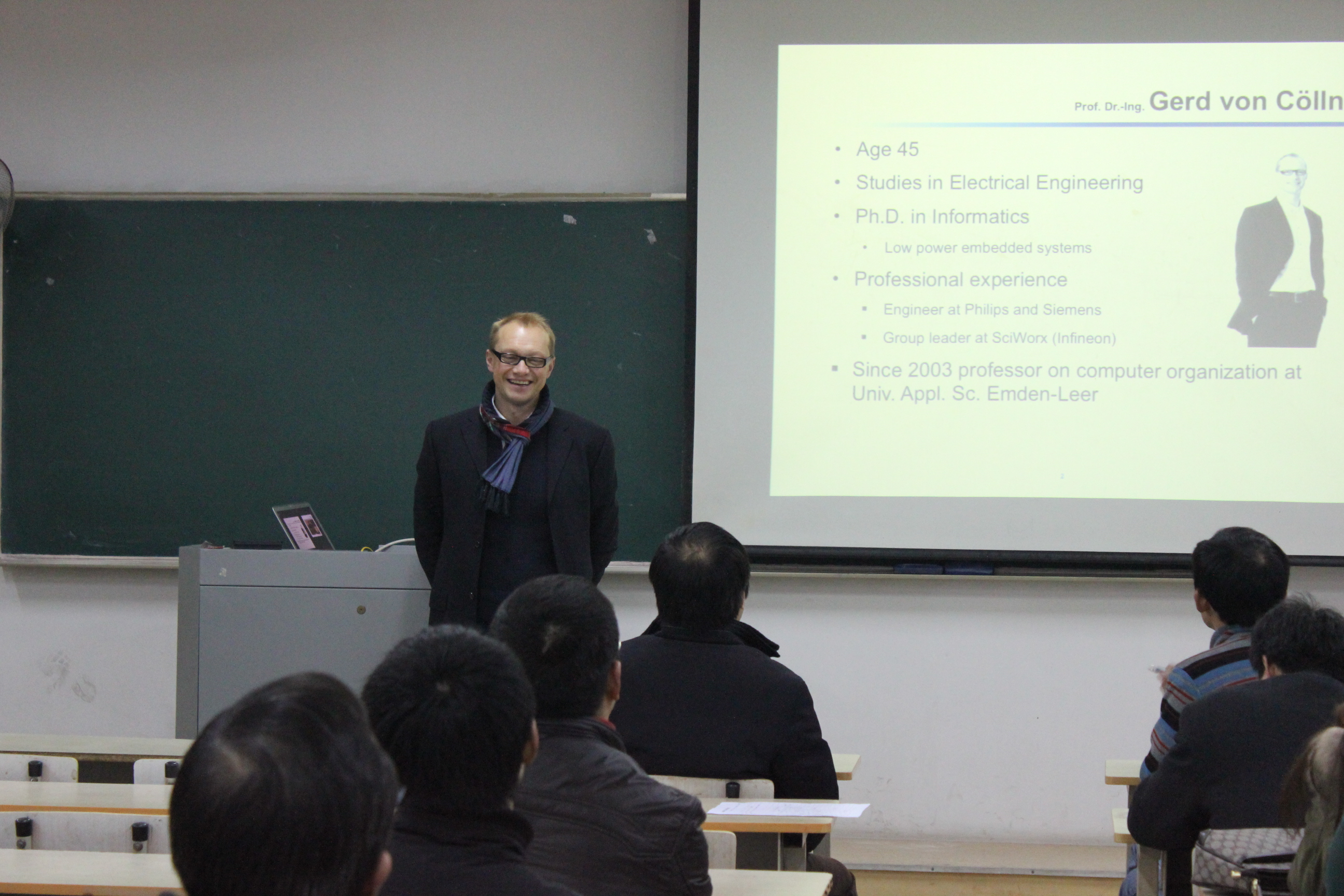 3月26日下午,德国德国Emdeen/Leer应用科学大学 Gerd von Cӧlln教授应邀做客和山数学论坛第45讲,做了题为“Overview on teaching and research activities”的学术报告。活动由校学科带头人、yl23411永利官网登录副经理陶祥兴教授主持,公司数学与信息科学系老师、研究生和本科生聆听了讲座。